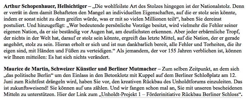 Das Berliner Abendblatt über das „Unholdt-Forum“